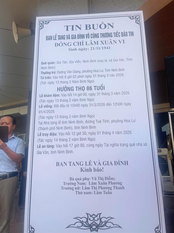 Quê quán: Tuỳ Hối, Gia Tân, Gia Viễn, Ninh Bình. Nơi cư trú: 96A Lê Hồng Phong, Vân Giang, thành phố Ninh Bình. Do tuổi cao bệnh nặng Ông đã từ trần hồi 8 giờ 3 phút ngày 31-3-2026. Hưởng thọ 86 tuổi.