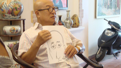 Sơn "tây" được vẽ trước... Chưa hút cạn điếu thuốc, tốc họa đã xong..Cái tình lẩn vào tranh, ngân nga trong tranh, cái tình của tuổi ít như Sơn, ít nhất đám, cũng đã ngoài sáu chục..tiến lên già..
